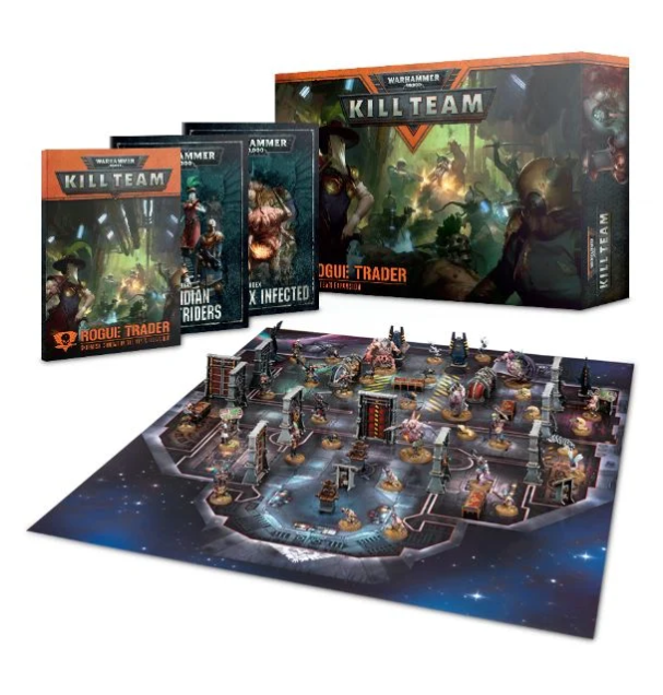 Kill Team: Rogue Trader is kind of an interesting dead-end for Kill Team, introducing more narrative, story-driven play with two new kill teams, the Elucidian Starstriders and the Gellerpox Infected. The expansion also includes some of the rules for Commanders. It comes with a reversible kill team board with close quarters battlefields and models for both teams. The models are beautiful but the teams themselves are weak and haven't gotten any support since the expansion released. You can skip this unless you really want the models.