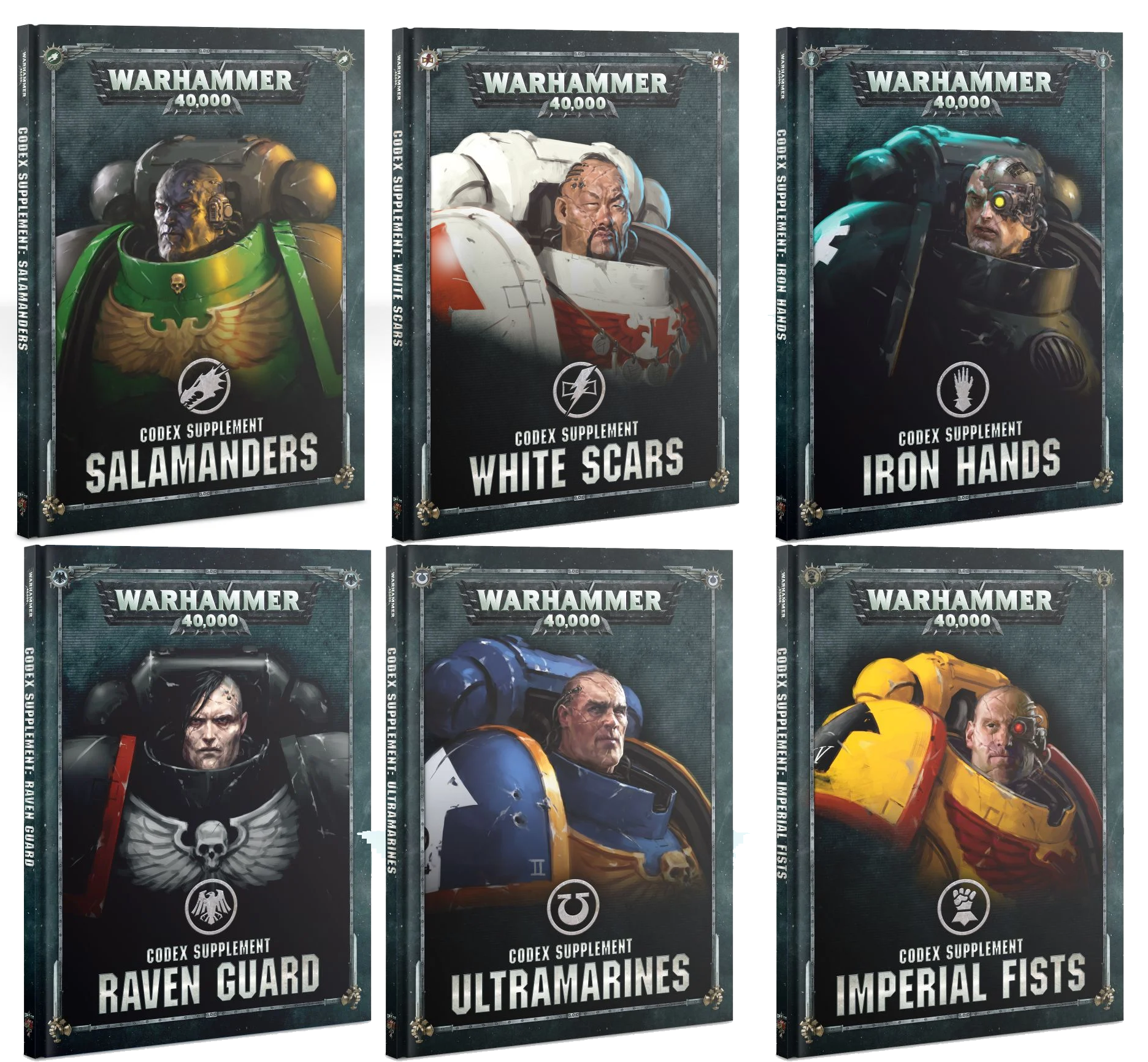 The Ultramarines, Dark Angels, Blood Angels, Imperial Fists, White Scars, Space Wolves, Salamanders, Iron Hands and Raven Guard are these lads. They are cool but they aren't