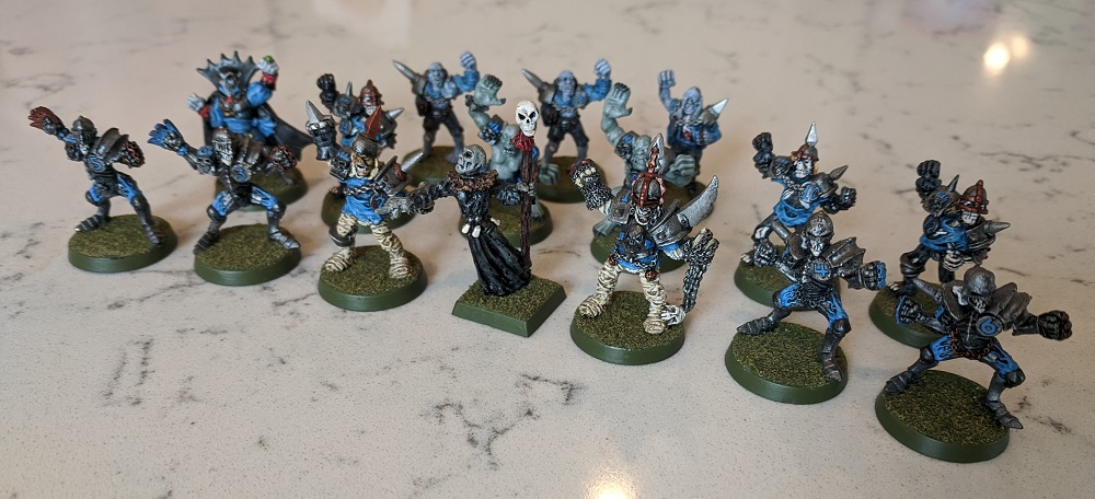 The Gravesburg Shamblers, with their Necromancer coach Chandrakor the Everliving. This is an old-school 1st run Undead team, and includes vampire star-player Count Luther von Drakenborg (Credit: Ilor)