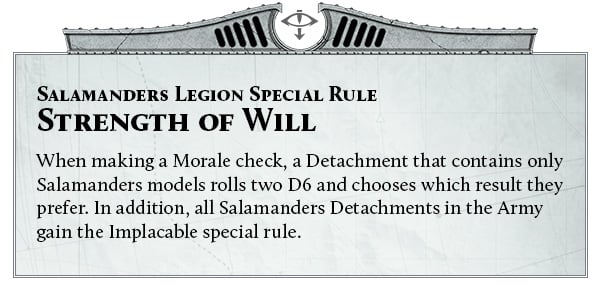 These are great bonuses that benefit pretty much every model in your army. Salamanders won’t let you down by running off.