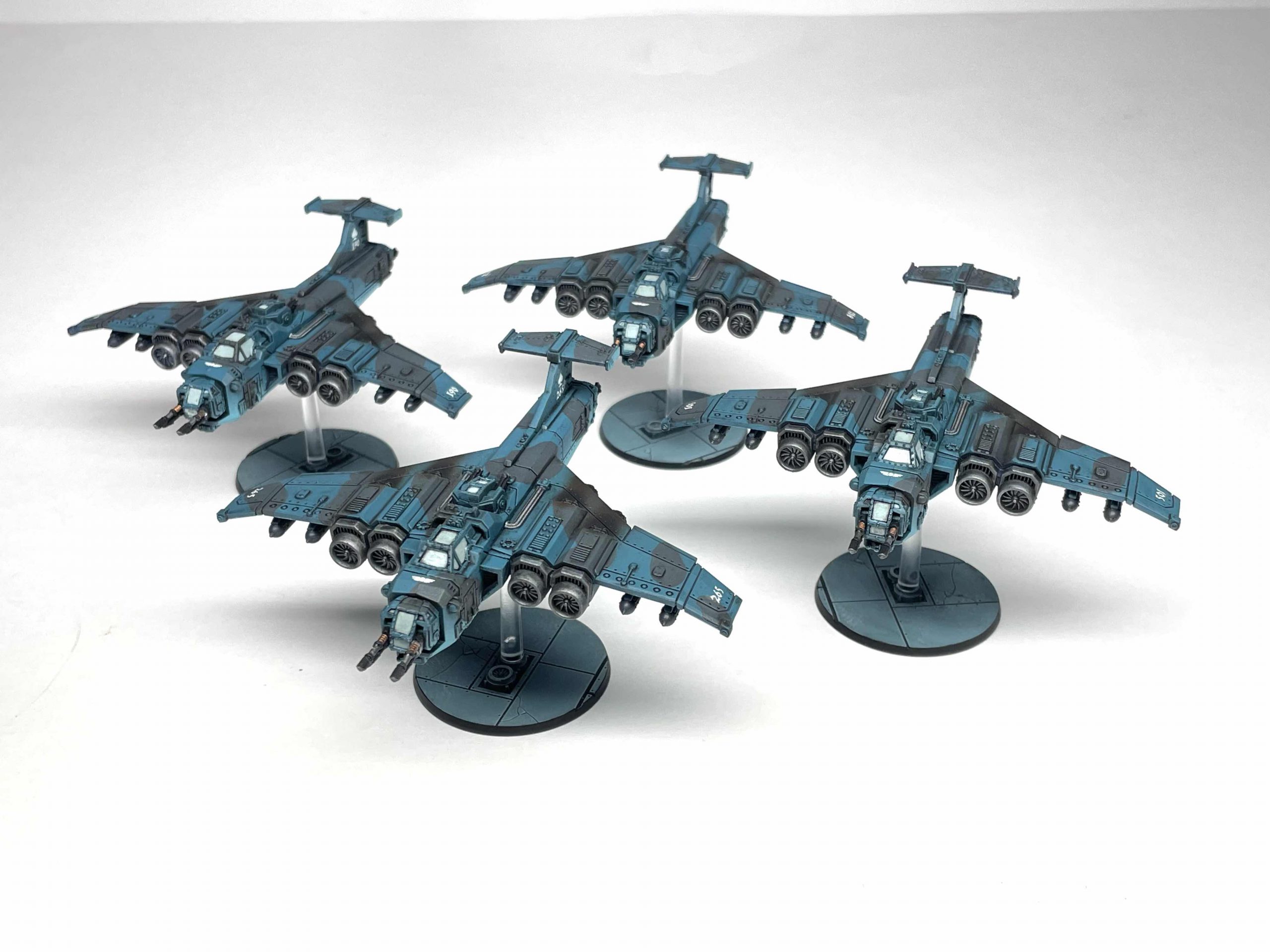 Future histories version of the Stuka, this is wrapped round an Avenger Bolt Cannon and has the option for either lascannons with exactly the same stats as the Thunderbolt or an autocannon battery giving you four Light AT dice. This means you either have the same bite as a Thunderhawk or trade it for rolling