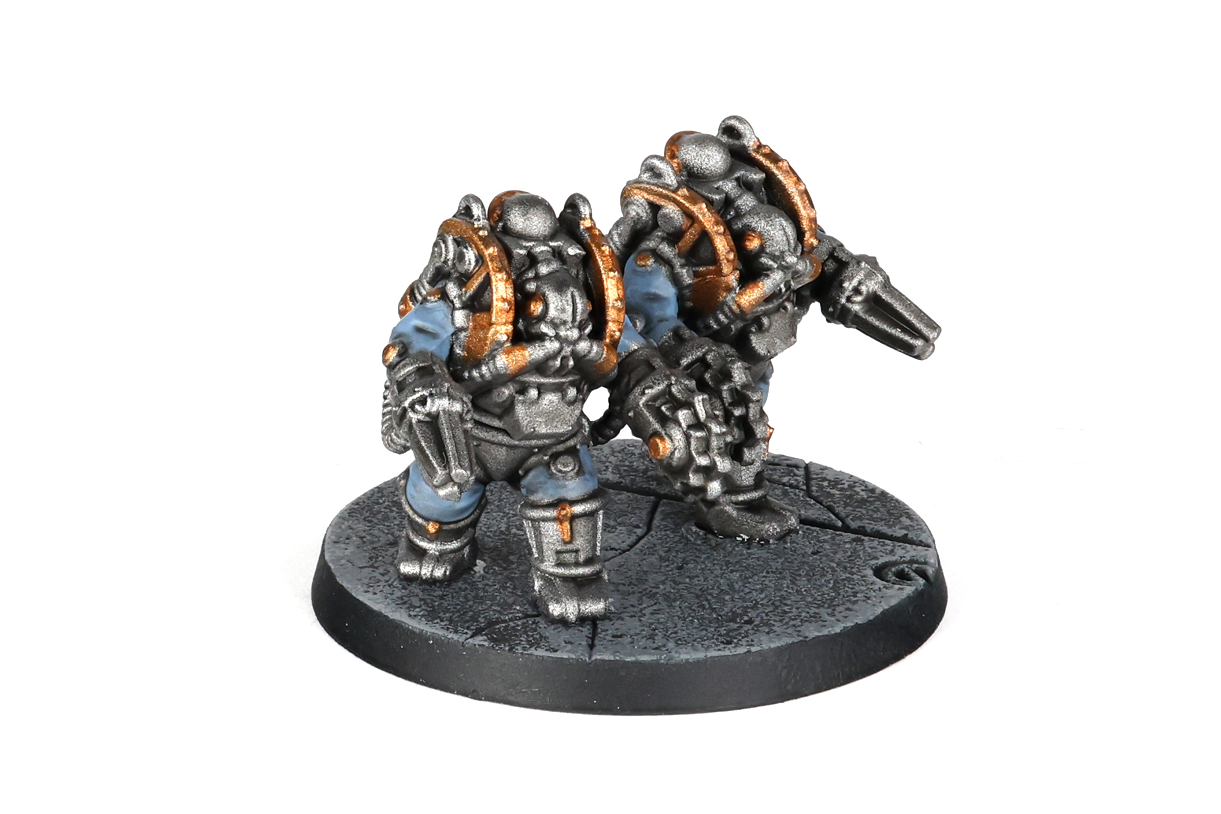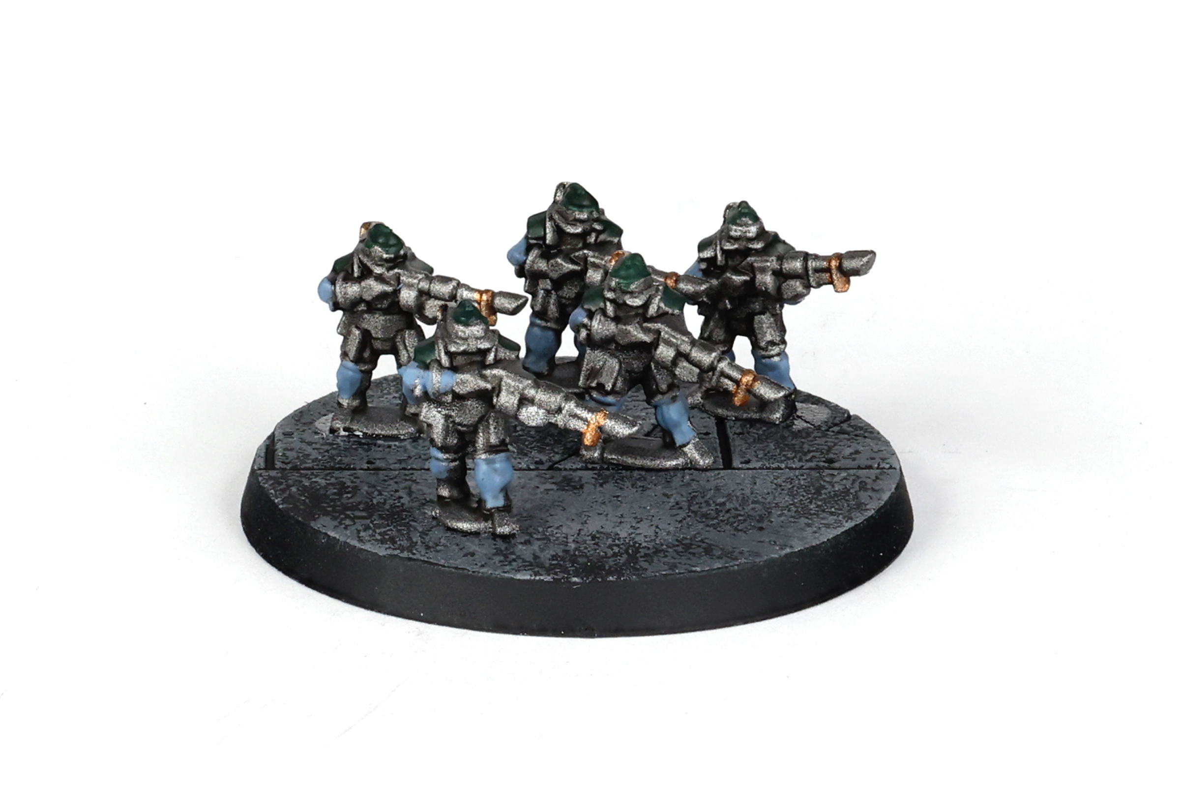 Close Formation Fighting bonus will bump their CAF up to +4, letting them punch nearly as hard as the Ogryns. At movement 5" and 6+ saves, they're as slow and fragile as the Ogryns, but they're a bit cheaper at 40 points for 4 bases, and adding extra models is even cheaper.