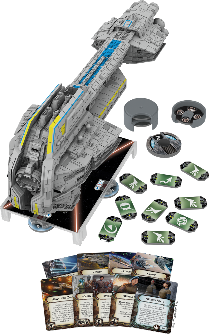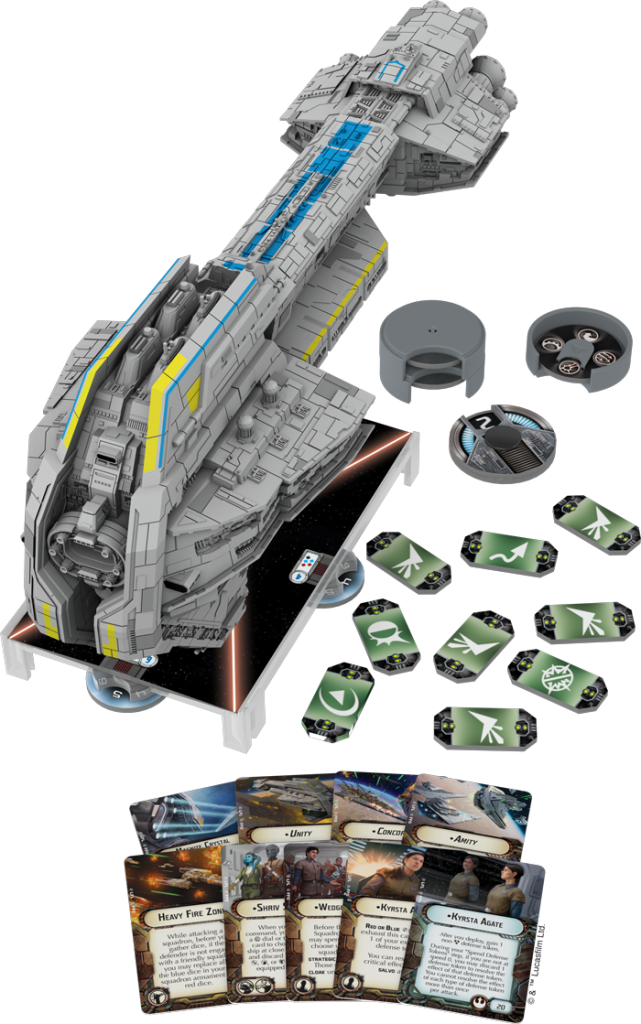The Rebel Alliance is a foil to the Empire. They are generally agile and well-shielded, but suffer from low ship HP. Their tendency is toward a mix of broadside and frontal power, with most ships favouring one or the other. Their squadrons are expensive, but multi-purpose and the Alliance is supported by outstanding characters and aces who excel at supporting each other.