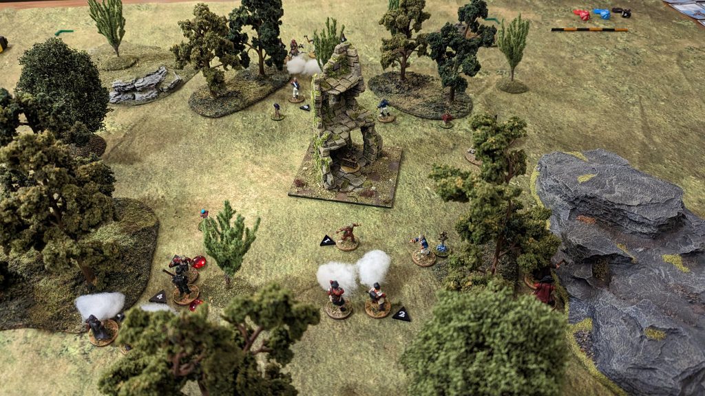Follower of the Old Gods to your Silver Bayonet. While they have very average stats (do not rush them into a melee), they're a Supernatural Veteran and also have access to Ancient Spells. This is a regular Courage Check (TN10) where the figure suffers one point of damage, but can then choose from the following: add one Monster Die to the Fate Pool if they don't have any, give a figure within 8" +1 damage and Fire on their melee attacks for the rest of the game, or summon a Viper within 3". Summoning a monster is very interesting - you could summon it, then move away from it, leaving it closer to an enemy with or near an objective.