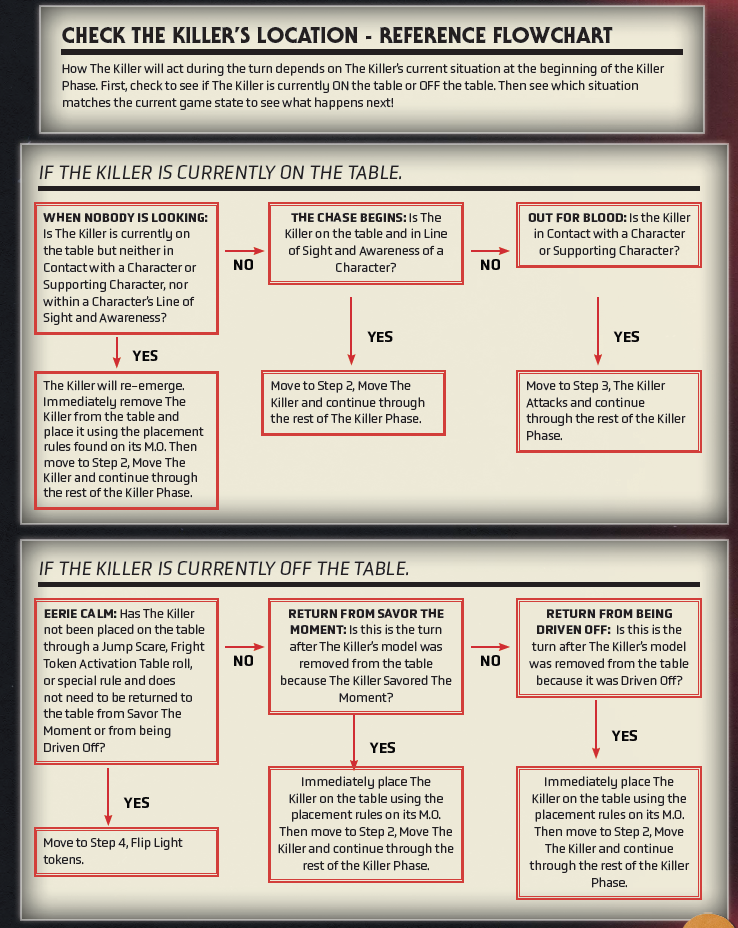 As you might expect, during the Killer Phase the Killer moves around the board (as long as they've already popped up). If they contact a Character - and they will - they attack, using their profiles. If they manage to kill a character - and they will - they will disappear off the board to savor the moment and come back later.