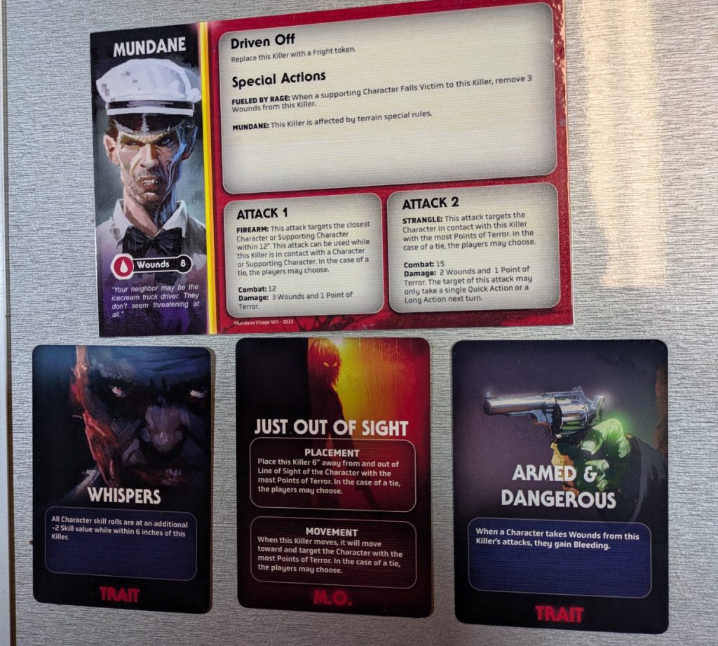 The game has it's own system set up to run the Killer, so you can have four people (or three playing four characters, two playing four, and so on) just running for their lives away from the Killer. They have an MO (how they're setup and who they go after), Traits, and Visage - the Traits and the Visage are basically special rules and how the Killer attacks. You can randomly generate these are use specific ones you want to create a Killer with.