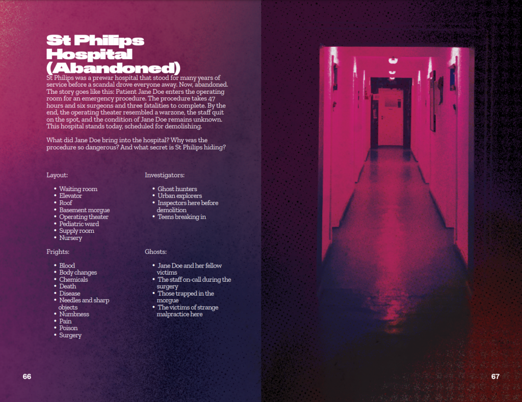 An example adventure, featuring possible frights and characters. Credit: Will Jobst