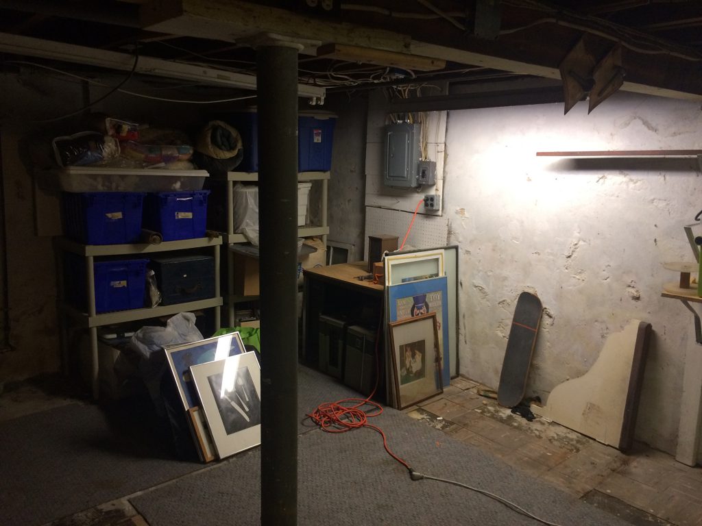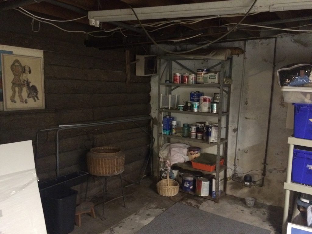 I started with a dirty, dank basement, with mold growing on the floor and one wall that was built to look like a log cabin. I got a dehumidifier and with some bleach and a scrub brush got cleaning and made it a habitable space.