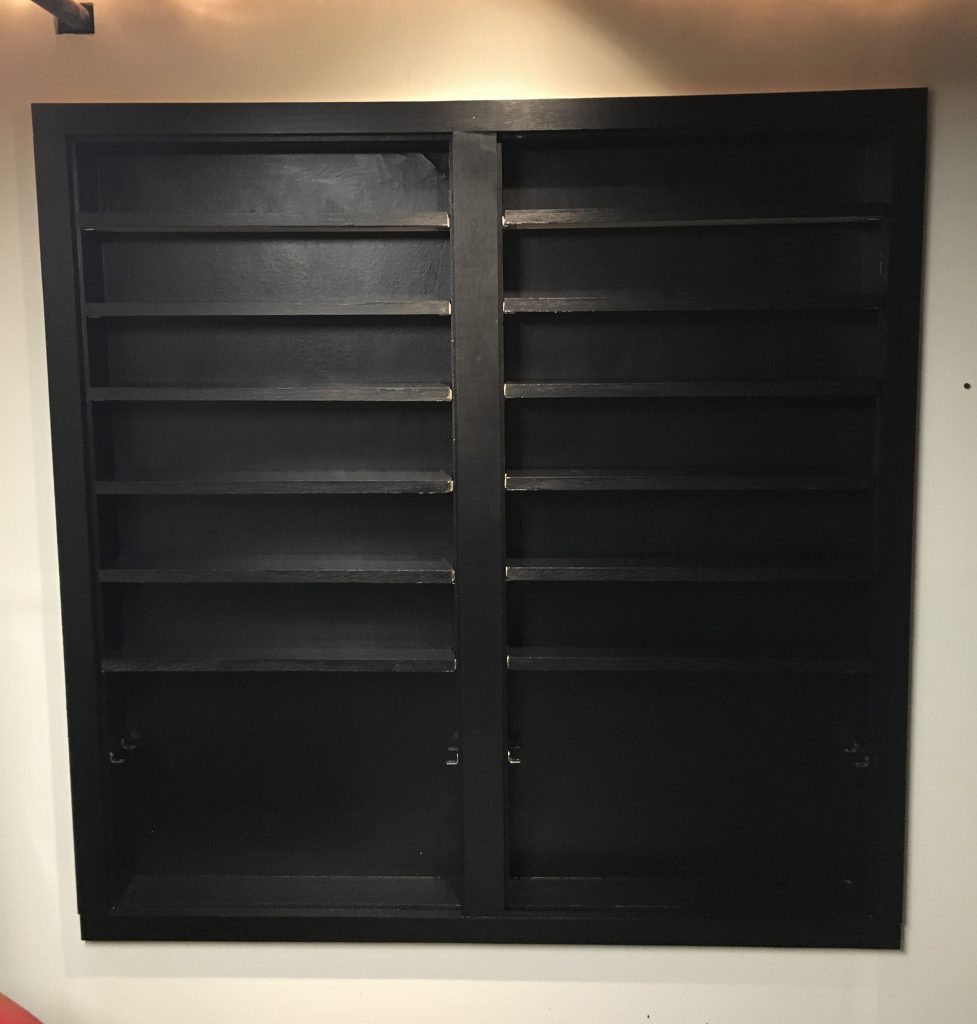Once I had that built and shelves cut, I painted it all black. Which might have been a mistake as it made it very dark, but I lived with it until I moved.