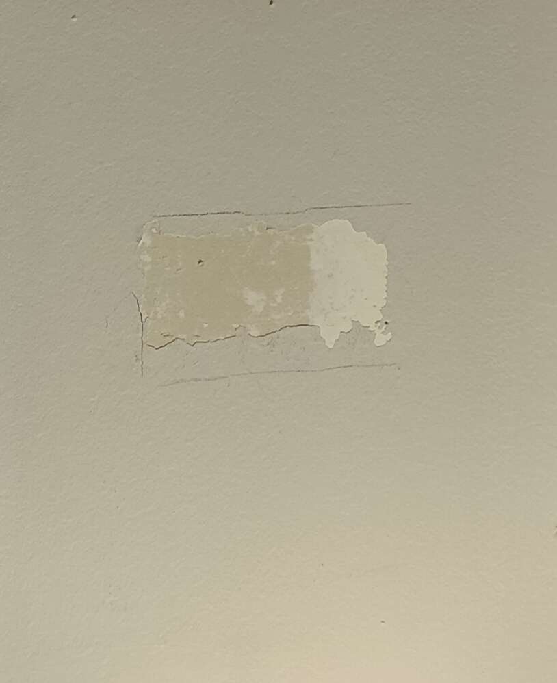 Thanks to whatever insane strength adhesive a figurine cabinet had, I was rewarded for still having active paint for this wall, which prevented me from repainting an entire room.