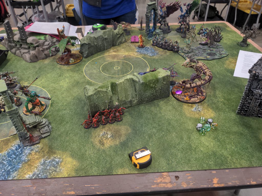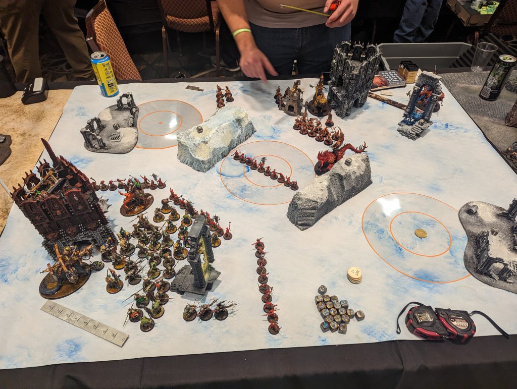 A very fine and very fun game of Age of Sigmar played in 2023 in Las Vegas. Note the foam blocks in the middle of the table.