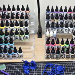 Jake: If someone has been around in this hobby for even a short amount of time, they’re going to have more paints than they know what to do with. They’re also likely to have them piled up in shoeboxes or chaotic piles on the painting desk. I tried a few different solutions over the years, but the one I’ve been happiest with also wound up being the cheapest – clear acrylic nailpolish racks. There are dozens of listing on Amazon, but