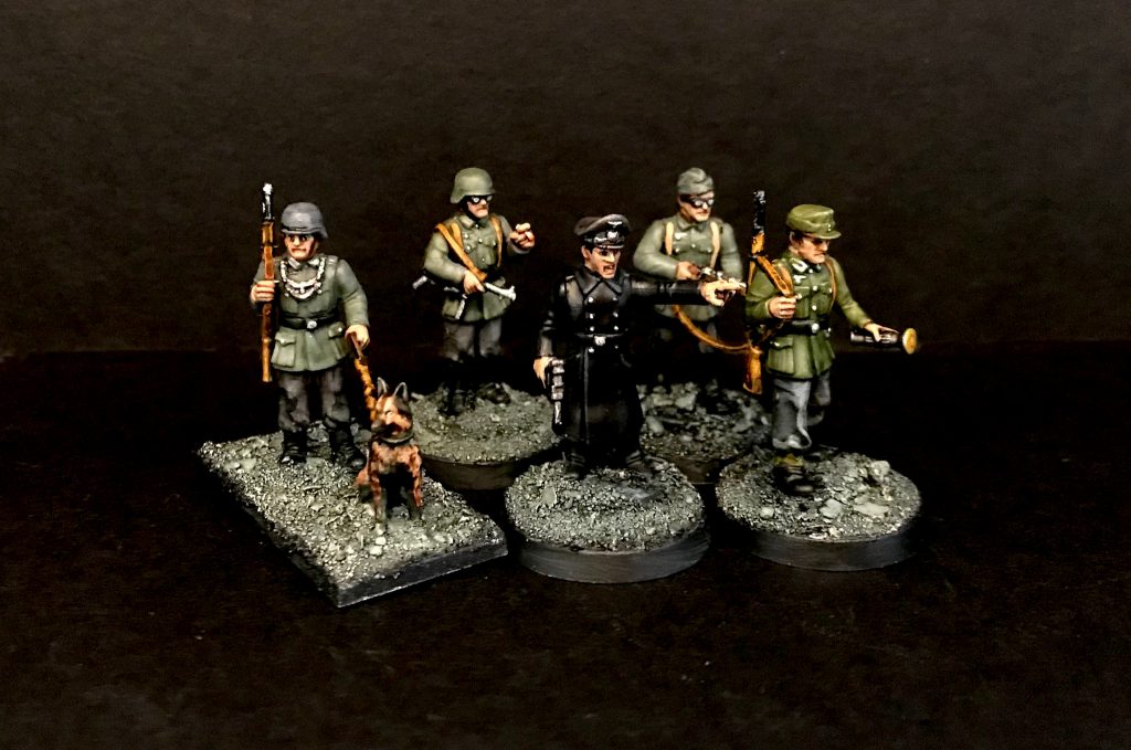 The rulebook, cards and tokens set is a good deal, and if you already have WW2 models, you'll be able to get going almost immediately with your current collection. The full starter set comes with models - Wargames Atlantic Commandos and German sentries. With more than full sides (12 British, 18 Sentries - with dogs) for British and Germans, it really is all you need to play. Both sets are high quality WA multipart plastics -