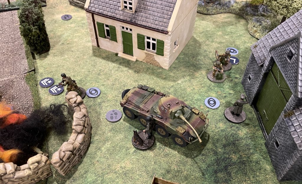 While this is a token heavy game, it's also potentially a terrain heavy game too. The rulebook (beautifully produced, incidentally), is filled with lovely pictures of fully modelled factories and stockyards. You do want a lot of terrain for this game, undoubtedly, but given the small size of the table, low model count and spotting rules, you can be surprisingly open. If you're reading this and thinking "yeah but I don't have a full WW2 board Lenoon, so I can't share this awesome experience", I got you. A standard 6x4 or 4x4 for WW2 makes for a lovely, suitably claustrophobic 3x3. If you have only fantasy stuff, well, a lot of fantasy houses, hills, trees etc are basically just northwestern europe with some extra skulls, and even a 40k tournament board will happily do you for a bombed out town, the much maligned L-shape ruins and all.