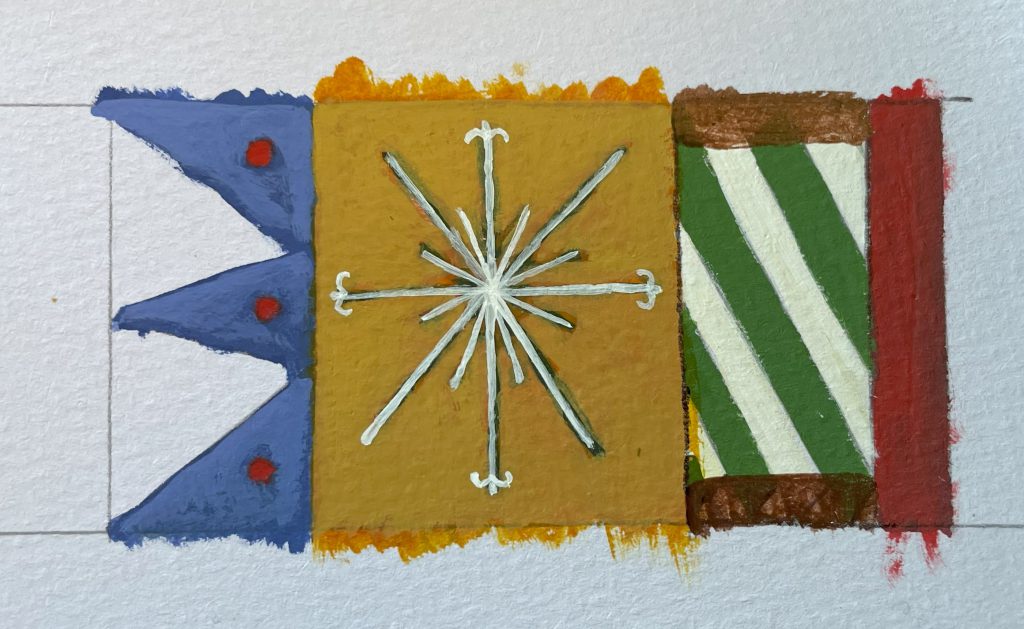 I didn't get it done in a day, but with the clock just ticking over 26 hours (grand total 26 hours and 15 minutes) the last paint goes on the last levy, everyone's base rims are done, tufts and flowers applied everywhere. The levy look