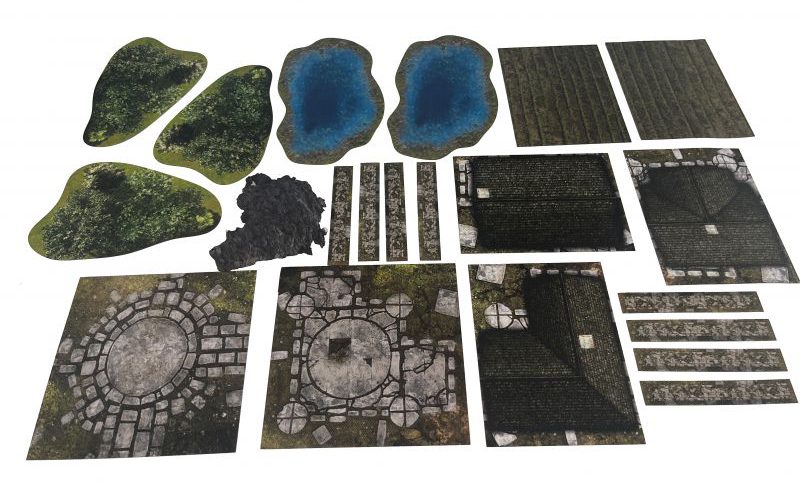 2D terrain Mega Bundle Pack, comprising several ruins, woods, ponds, fields and stone walls you can use as ultra-portable terrain for Saga and any other games you might be playing. I've not really used 2D terrain before, so when I saw these I was pleasantly surprised - they're well printed, clearly visible and highly robust, printed on non-slip fabric so they'll stay in place during use. Even on my increasingly scarred and slippery dining room table, they were grippy enough for me to have to put effort into moving them, which bodes well for gameplay. While personally I'm not a 2D terrain person, if you want cheap, easy terrain in volume I'd definitely have a think about these.