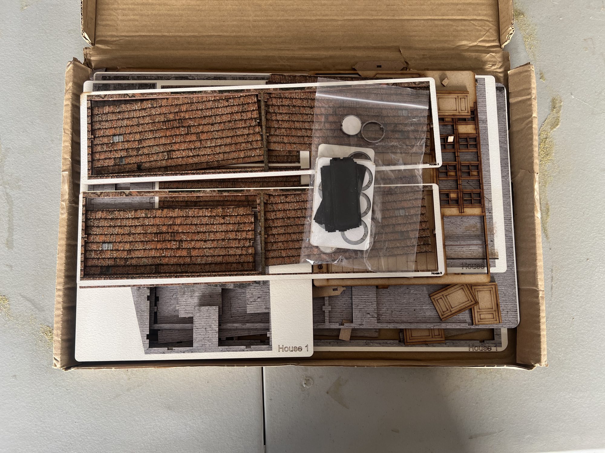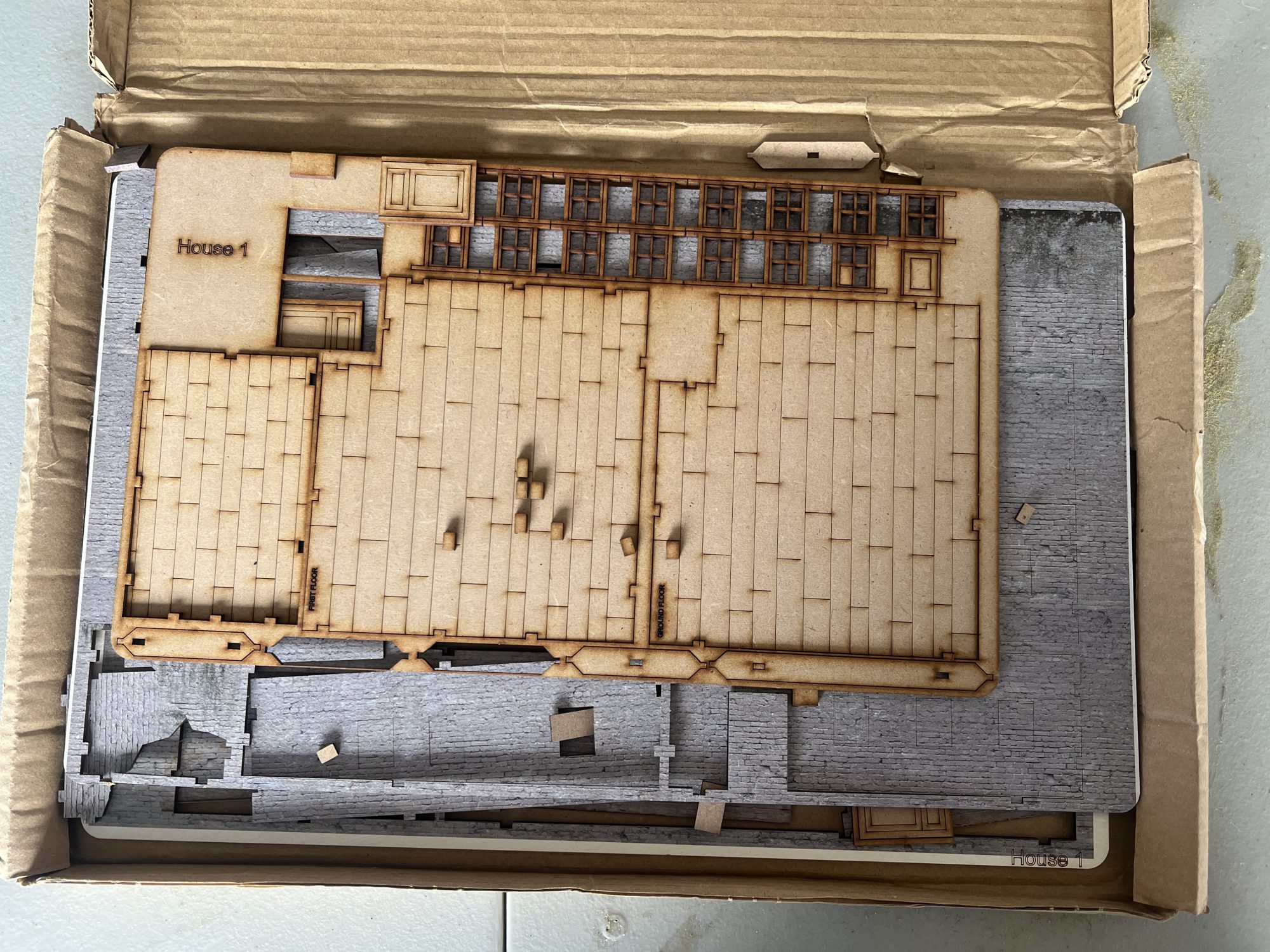 On opening the European Village Bundle MDF model kits from Bandua Wargames, I found myself a little overwhelmed. The kits had arrived mostly intact, with only a few of the smaller components shaken loose from their frames in transit. Nothing was broken or missing however, which spoke well for the resilience of the MDF kits.