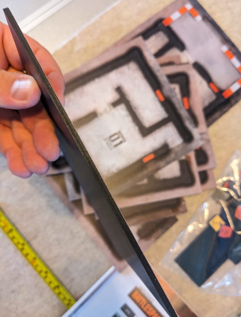 The tiles themselves (there are five medium size buildings and one large one) are made of a 3mm thick PVC of some sort - I'm not an engineer but to me they feel sturdy and seem like they'll keep their high def image printed on for a long time. I put them in a big bag that'll go in a sturdy box so they don't get crushed.