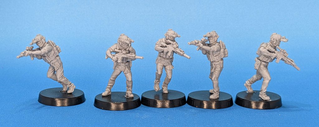 There are 12 Shurta minis in three different poses (from my count) and they're easy to put together. They provide an excellent contrast to the operators and mercenaries because they're wearing bulkier clothes and big army boots.