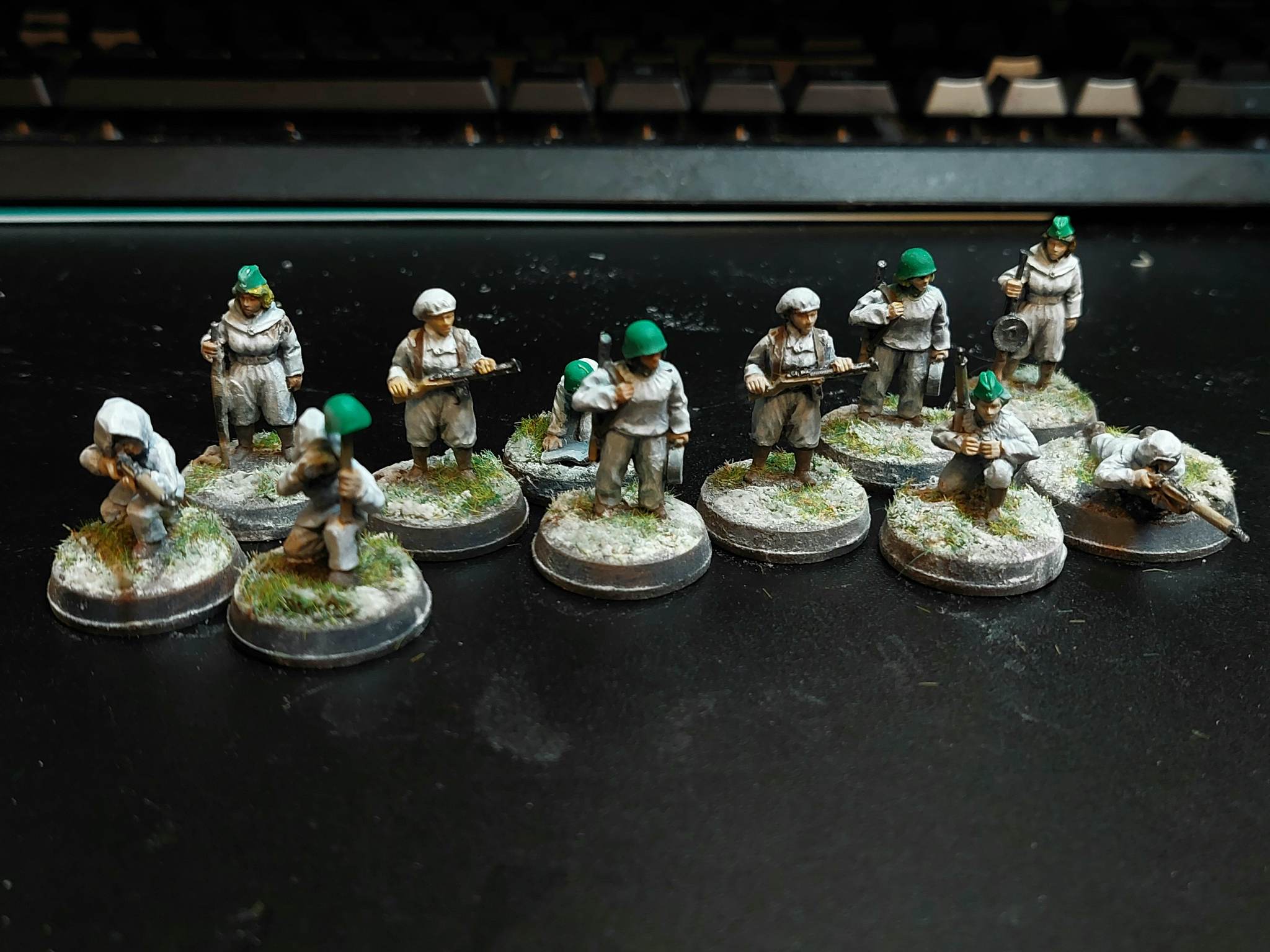 Malnourished and Frostbitten': whenever they are given a run order successfully, they gain a pin marker, representing their flagging strength. What's peculiar is the fact that you buy up to five additional men as unarmed soldiers, buying rifles for an extra 3 points each. Unarmed men can only count as casualties and not fight either at range or in close combat.