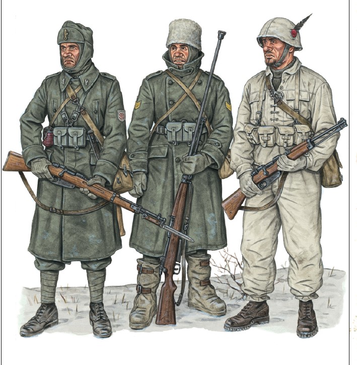 Italians on the Eastern Front. Excellent art from Osprey in the Case Blue Bolt Action Campaign book. Credit: Stephen Andrew @ Osprey Publishing Ltd.