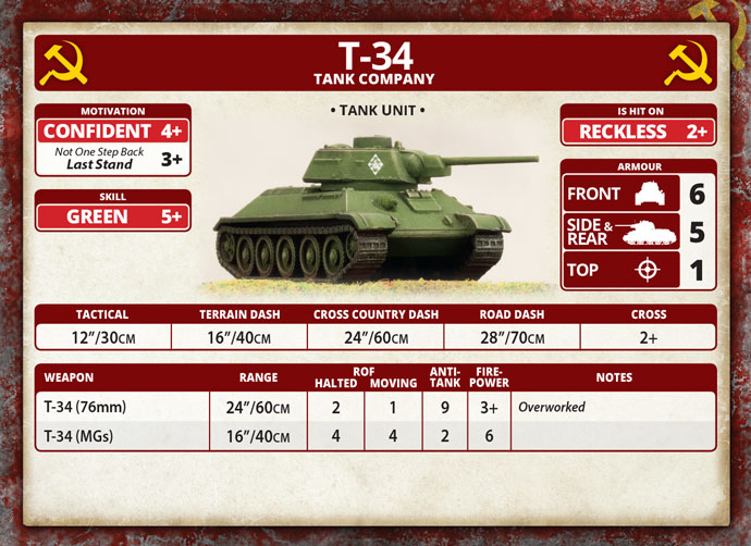 T-34 Unit Card. Credit: Battlefront Miniatures
