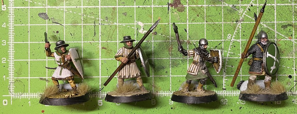 Sergeant Scale Comparison - Left to right: Footsore, Fireforge, Footsore, Victrix Norman. Footsore Barons' War: Outremer