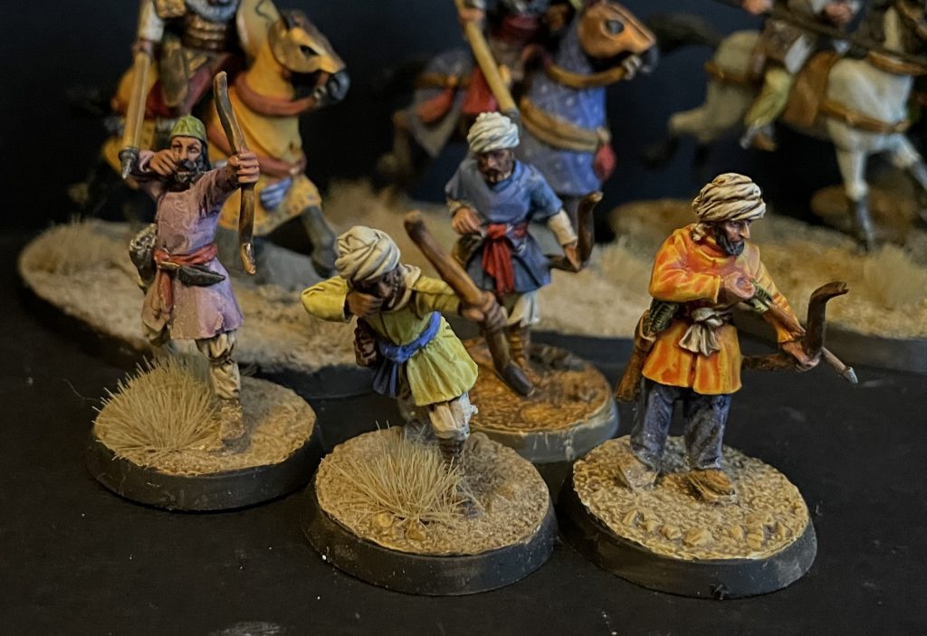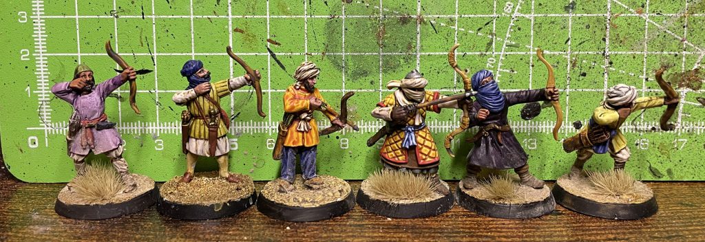 Islamic Archers. Left to right: Footsore, Essex, Footsore, Fireforge Bedouin, Gripping Beast Plastic, Footsore. Footsore Barons' War: Outremer