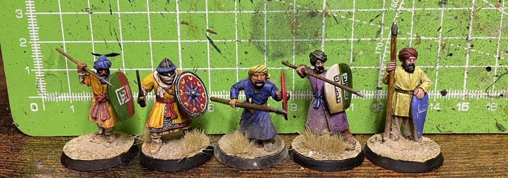Islamic Foot. Left to right: Footsore, Fireforge Bedouin, Gripping Beast Plastic, Footsore, Perry. Footsore Barons' War: Outremer