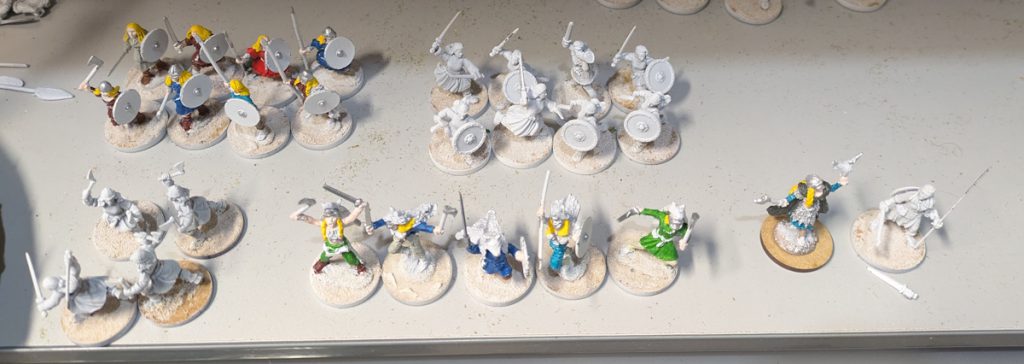 I chose to make it a pretty simple list - four hearthguard, four berserker hearthguard (he insisted on that), eight warriors and either eight warriors or 12 levy. Warriors work better with certain abilities so I think we'll go with those, but he might like the idea of bow guys shooting. We'll do some testing - we have time. We might also substitute the regular hearthguard for warriors.