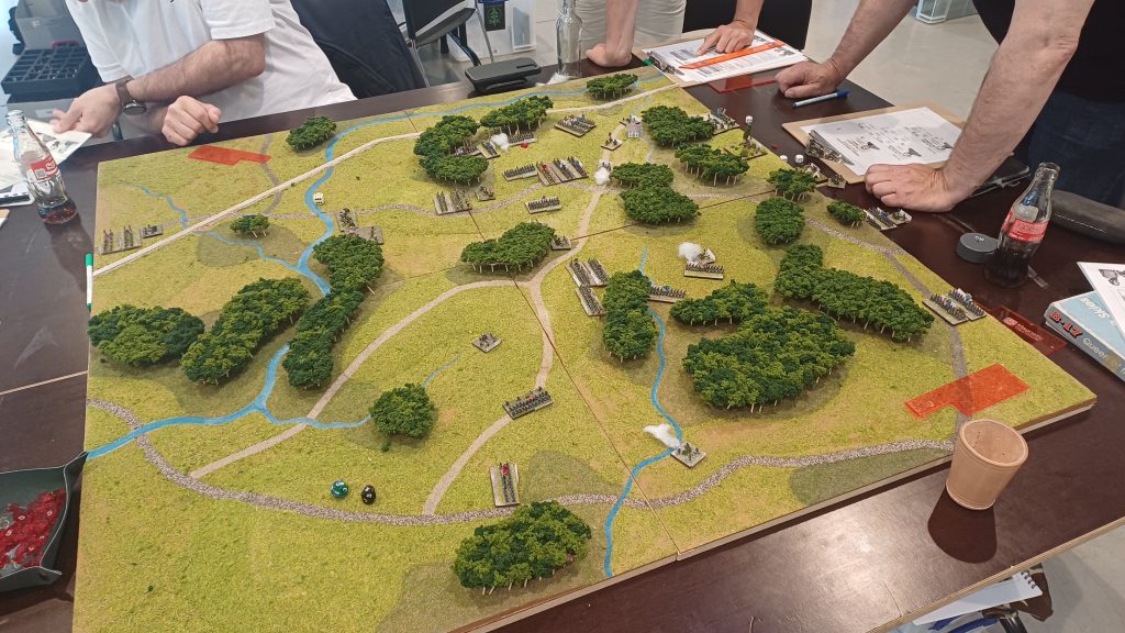 The total actual play time was about 5 hours, starting out in the late morning and continuing after a relaxed lunch break. Since every player gets to command a general (or two if playing the Union side), working together is key. Every turn featured whispered huddles and tactical debates. The bidding system kept play brisk and decisions meaningful. Few games can survive the dreaded “let’s all play Fontenoy it’ll be fun” idea, which you know will end in a terrible slog where you might as well be sat in a hospital waiting room while others are doing their thing. AoF is pretty much the perfect multi player game, even with the smaller scenarios. The reason I played this game the most last year is because it’s pretty much perfect for my small scale dream: an accessible game that can be concluded in an afternoon or evening which delivers the experience of a historic battle.