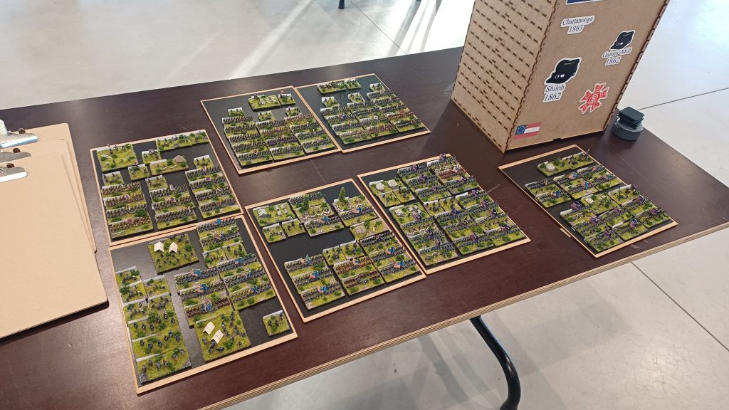 To get a feel for the scale, the Battle of Jonesboro in the picture above is played on a 3x3 board, one of the smaller scenarios in size, but medium in terms of troops (about 20,000 Confederates, around 15-19,000 Union troops). The first thing you need to know about Altar of Freedom (AoF abbreviated for the rest of the article) is that it is very much a scenario based ruleset. There are two campaign books which give you the order of battle, board lay-out and timing of reinforcements, if any. The author carefully explains why he chose this in a game design philosophy chapter, which is something I’d love to see more in rulesets, but does reluctantly give you points values if you want to try a make-believe battle. However, AoF really shines in the asymmetric historical recreation of the battles.