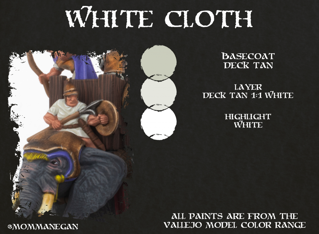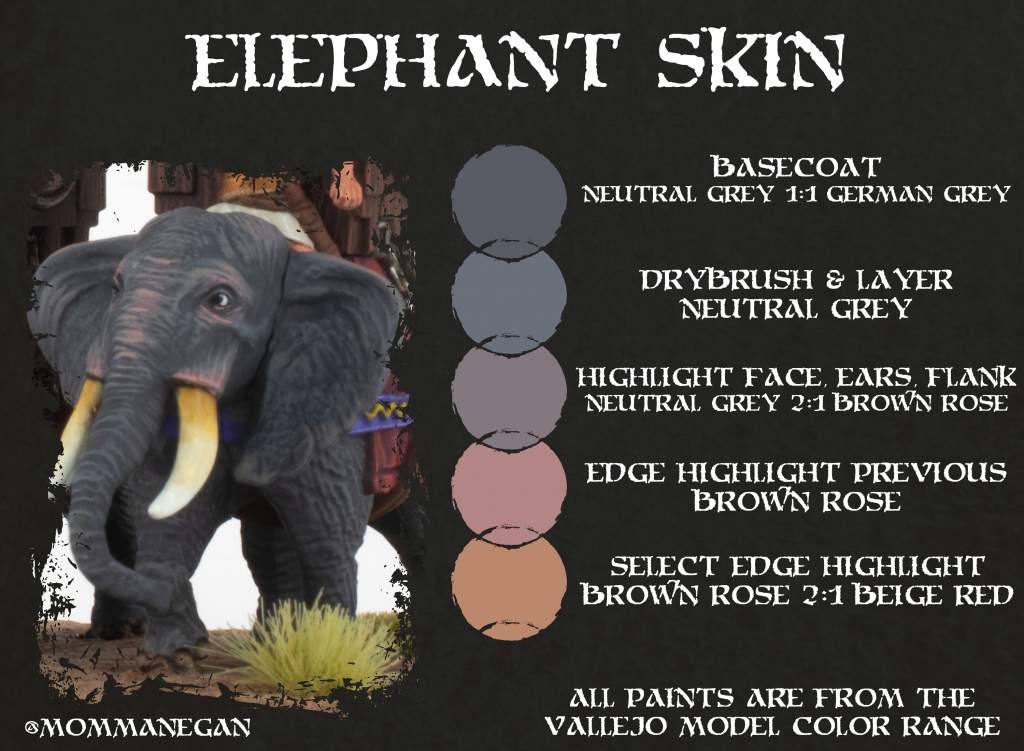 I started with painting the elephants, employing a mix of drybrushing and highlighting to give their skin enough texture and integrate the more rosy skin tone around the bridge of the trunk, their eyes and ears. Their tusks where done by applying ivory across it first and then gradually dulling it down towards the 'gums'. I also made the decision to paint the howdahs as though they were bare wood. While colorful is probably the better choice when painting smaller miniatures, I found some illustrations of War Elephants online with bare wood howdahs that convinced me otherwise. Lastly, as these big beasts have some sizeable eye sculpts I would encourage you to paint them in as it gives them a lot of character.