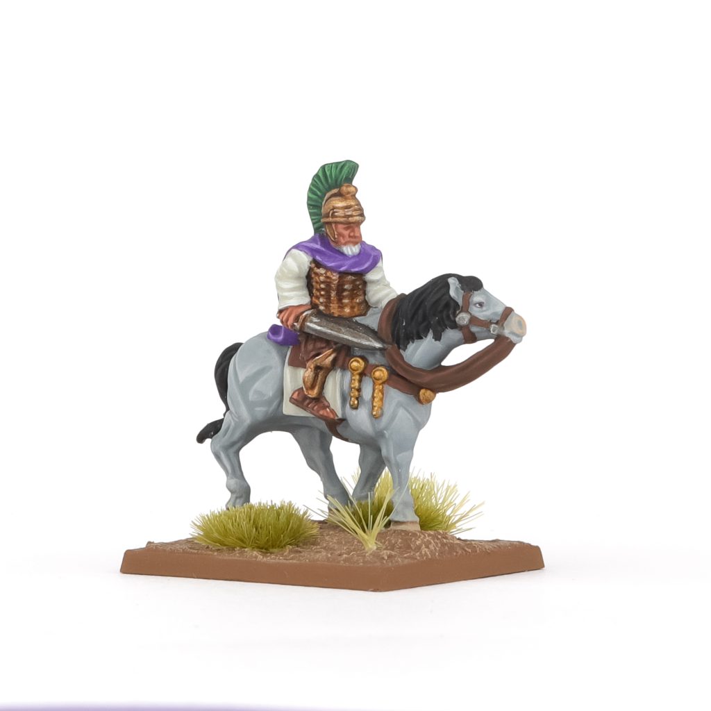after all he is the commander and should stand out. The first hurdle was the horse. Horses, the bane of every painter's existence; white-grey horses even more so. My approach here was to define muscle areas with a highlight color rather close to the basecoat and from there feather out highlight more towards edges that catch light. It's still incredibly tedious, but the scale does make it more forgiving in my opinion.