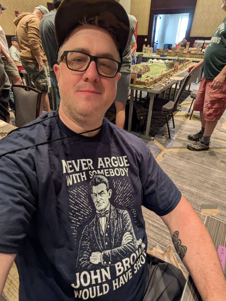 Historical conventions are generally different from what you might expect if you've attended GW events or AdeptiCon. Instead of lots of tournaments, there are a few tournaments (Bolt Action, Art de la Guerre, Triumph, SAGA, others - even 40k had a two day tourney) but mostly there are participation games, where a gamemaster paints a ton of minis, brings terrain and a mat and sets up a game. Players sign up to play in the game based on what rules or conflicts they're looking for. This gives players a great opportunity to check out new rulesets, new miniature lines, and have a good time playing a game they like without having to buy and paint everything.