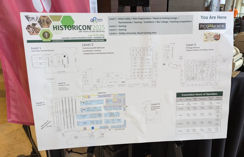 Last week grognards from around the country (but mostly the east coast) gathered at HistoriCon, the USA's biggest mostly-historical wargame convention. HMGS, or The Historical Miniatures Gaming Society, puts on three conventions a year - Cold Wars in February, HistoriCon in July, and Fall In in November. Historically they've been held in a variety of places but many of them in beautiful Lancaster, the heart of Pennsylvania Dutch country.