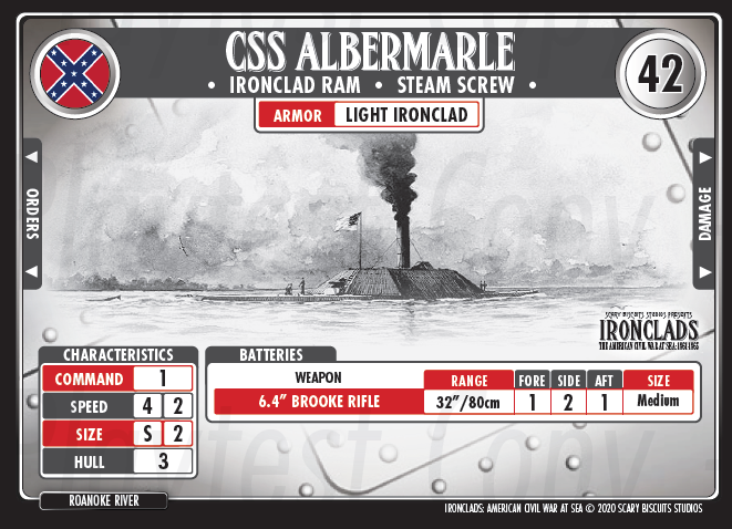 There are also standard scenarios for what I would consider Matched Play. Each ship has a points value and there are six standard scenarios with objectives and terrain. This is incredible for an ACW naval game as many are only set up to do certain scenarios (with points to