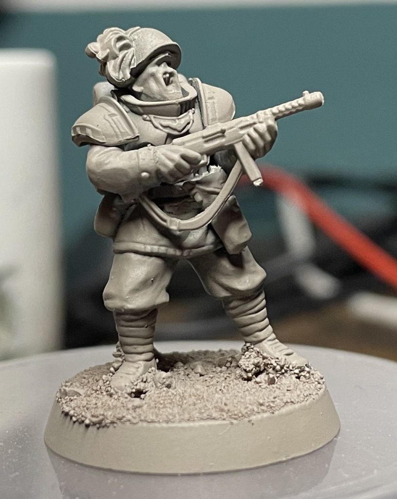 I haven’t managed to get a game of Konflikt in yet, so the plan for the army is, as always, a matter of making what I fancy. I’d like to arrive at some happy-in-principle concepts for each of the troop types I’d like to include, so that I can either expand these into full squads (or several squads), or fold them into miscellaneous Officers, Hangers On and Accompanying Observers.
