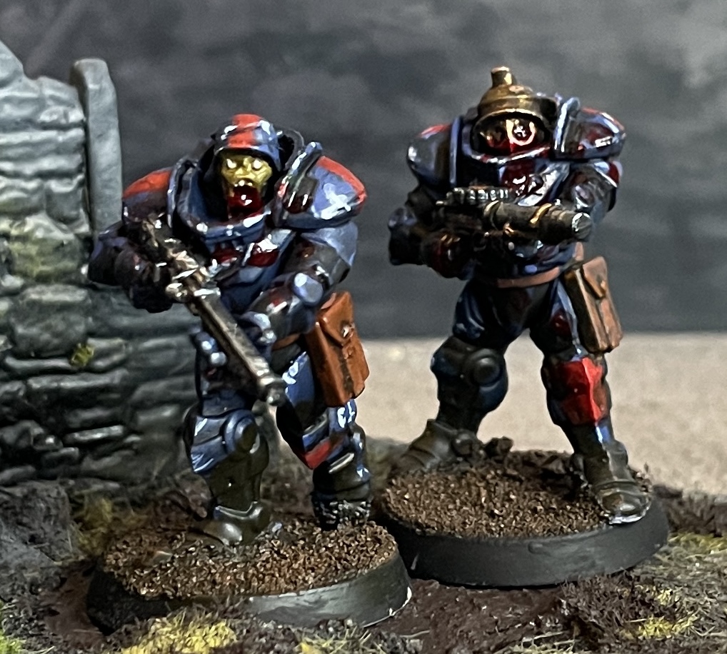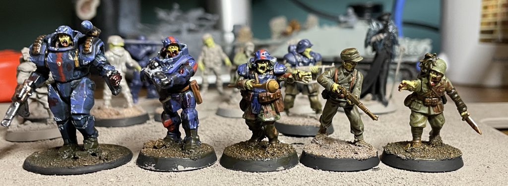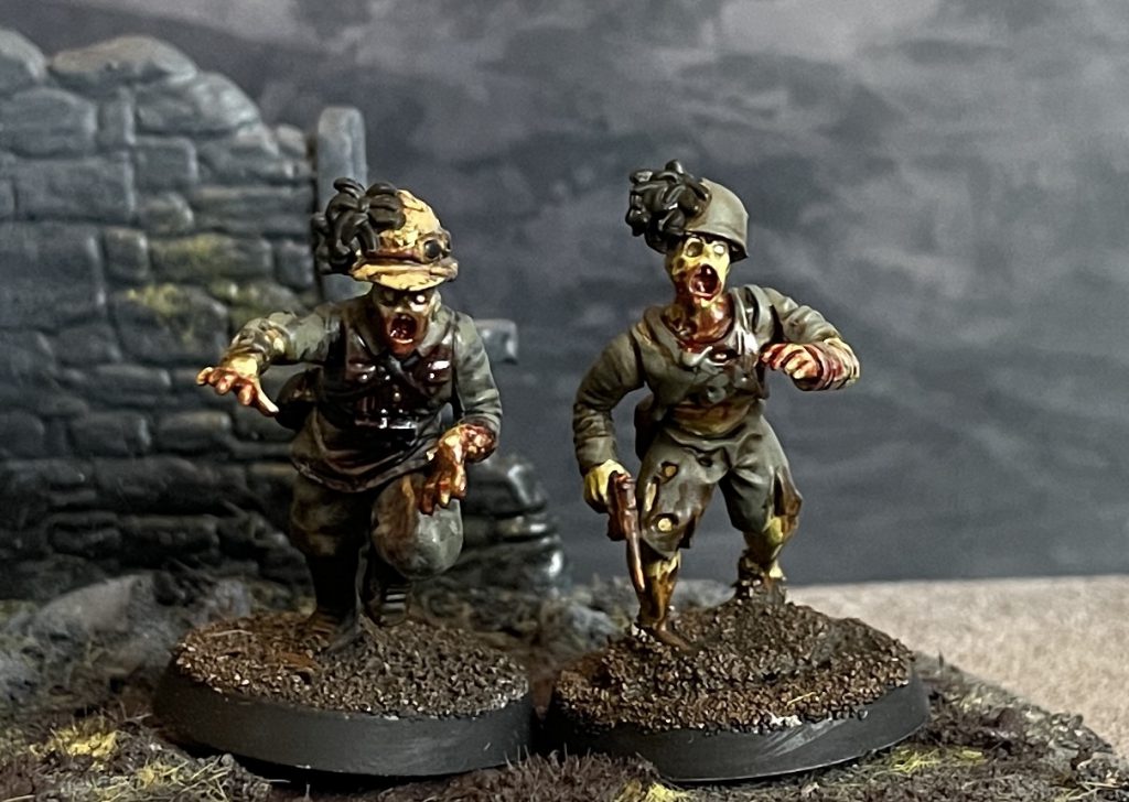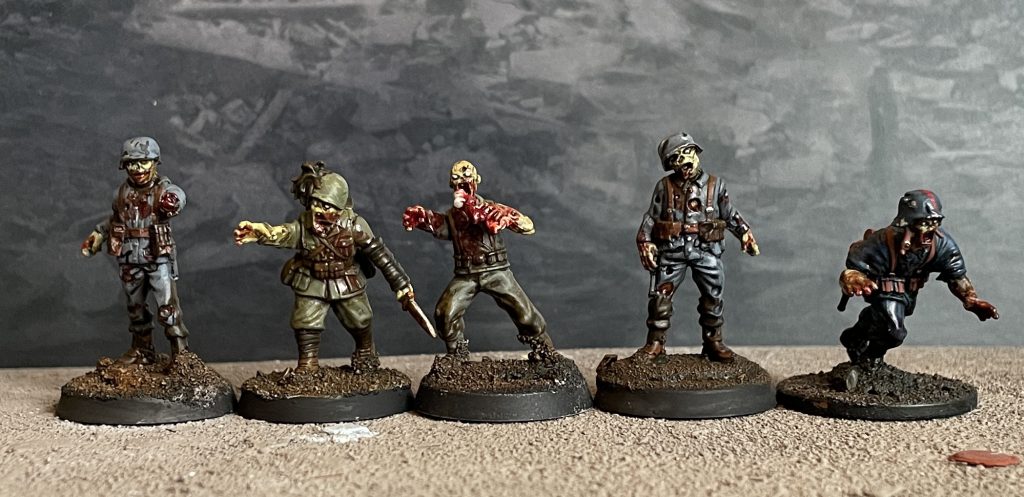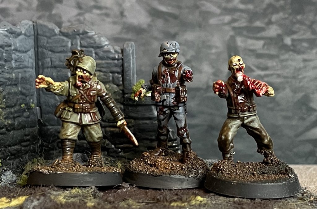 Unified paint scheme - I’d like to draw elements of this army from across the European Axis Powers, doing a suitably comic book grim uniform for each. To keep it from being a hodge podge of various colours though there’ll be unifying spot colours of blood and very bright zombie flesh.