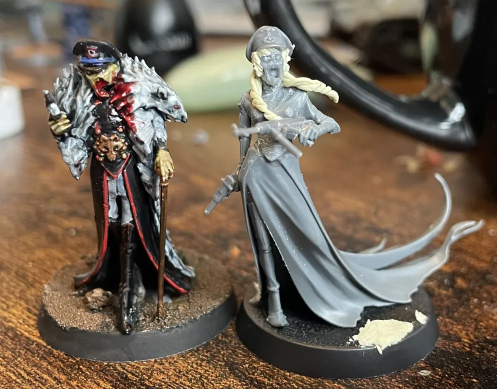 While Warhammer doesn’t often scale well with Historicals, Vampires tend to! Eerily spindly hands and legs at 32mm heroic work well with normally scaled 28mm. This meant that both Commander models (I couldn’t resist doing two) could cope with direct hand swaps without anything looking disproportionate - a Luger and a Baretta work perfectly for the aristocratic Prussian look. The Rat Prince required very little work to fit in. I replaced the sword arm with a pistol, cut the rat tails off the bottom of the robe and switched out a head - done.