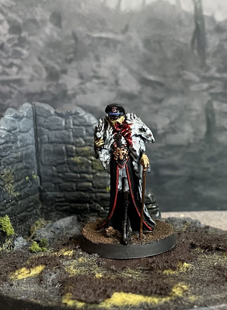 The Zombie police heads look so nice for Nazi/Gestapo heads (I wonder why?) that the idea for a Company Commander came full formed. Age of Sigmar Vampire characters have a very interesting aesthetic that chimes well with gothic and pulp horror, particularly in the kind of fantasy ww2 exploitation movie space. Thigh length leather boots, long sweeping jackets, and ridiculously over the top collars/coats really hits the “cartoonishly evil uniforms designed by hugo boss” vibe I’m going for.
