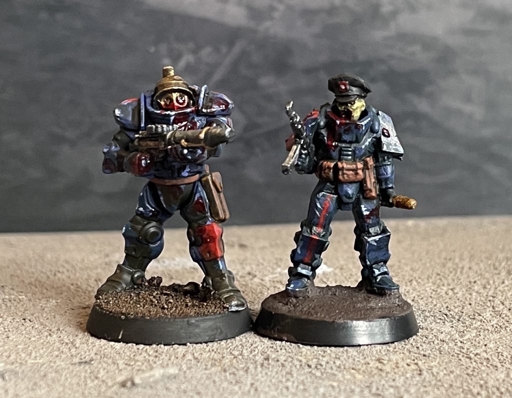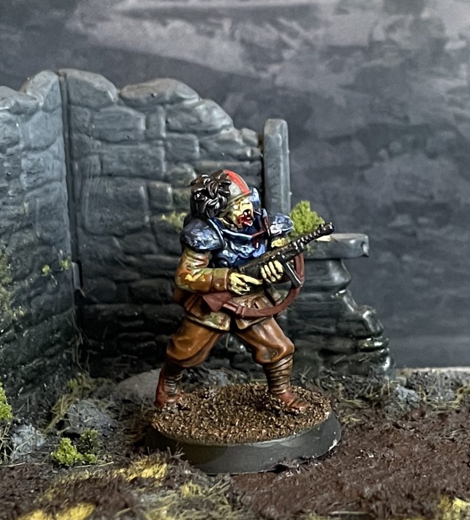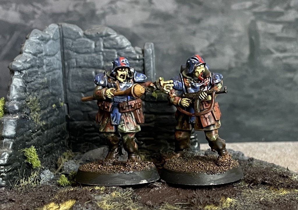 We reviewed these fairly positively, and they were the inspiration for the whole project. This is straight headswap kitbash, the easiest possible type of converting! Stahlhelm heads from the Zombie set, a small spacer of clipped off sprue between head and body, and that’s it! Nothing else needed and they fit the theme well.