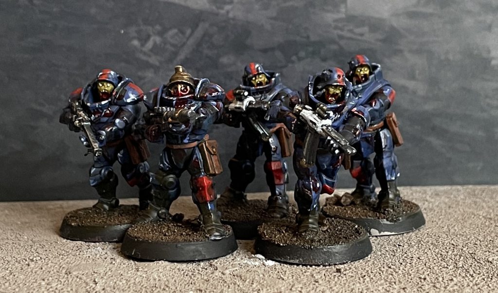 It's a good base for a rotting horde of fascist bastards and, really importantly, clearly looks like an antagonist force. I want these guys to get the shit kicked out of them on the tabletop - they should do, they're dead fascists, so the challenge is to make them stay dead! I think I've nailed the look of evil pieces of shit commanding a terrible horde of scifi weirdness, and I can't wait to get them on the tabletop, hopefully to lose in spectacular fashion. I'm hoping to revisit this force in a few months to create some of the weirder and wilder genetic experimentation monstrosities you can find in the Konflikt Axis list, but first I should probably get the rulebook!