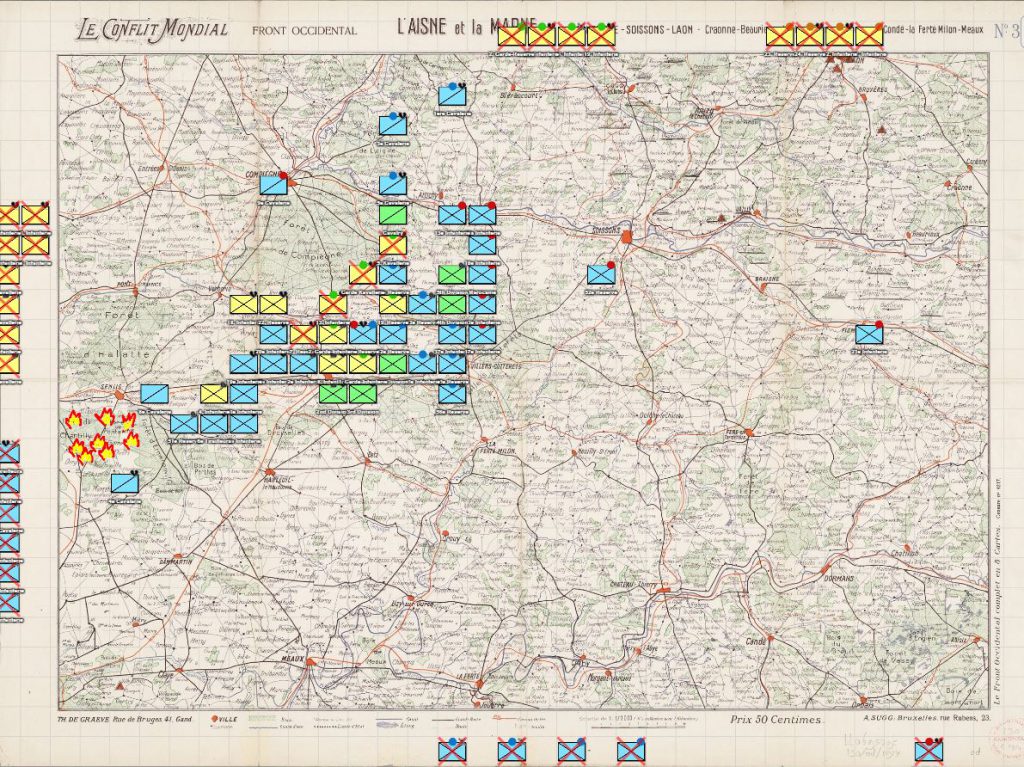 By this point, that village of Crépy had seen a shocking amount of combat - have a look at the left hand side of the map there for the ‘dead pile’ of divisions that had been fed into those few squares of map that were no longer combat effective. Both von Kluck and d’Esperey had pulled forces off of the line here, shocked at the speed of the bloodshed, and were searching for a way around each other.