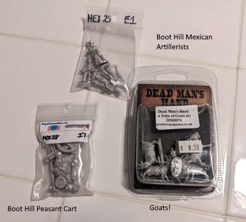 Boot Hill Mexican minis for Sharp Practice and DMH goats for various eras bought at HistoriCon. Credit: Michael O "Mugginns"