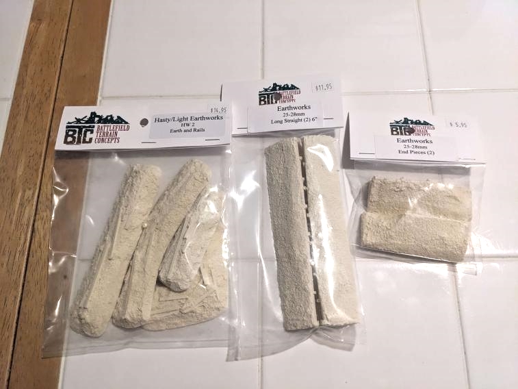 Earthworks from Battlefield Terrain Concepts bought at HistoriCon. Credit: Michael O "Mugginns"