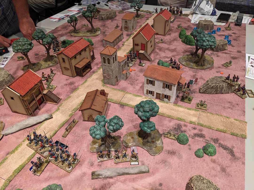 I made up all my usual unit and commander cards and printed them out. Setup was quick for the game as it is mostly buildings and trees. I think the table came out really nicely and showed the period and location pretty well.
