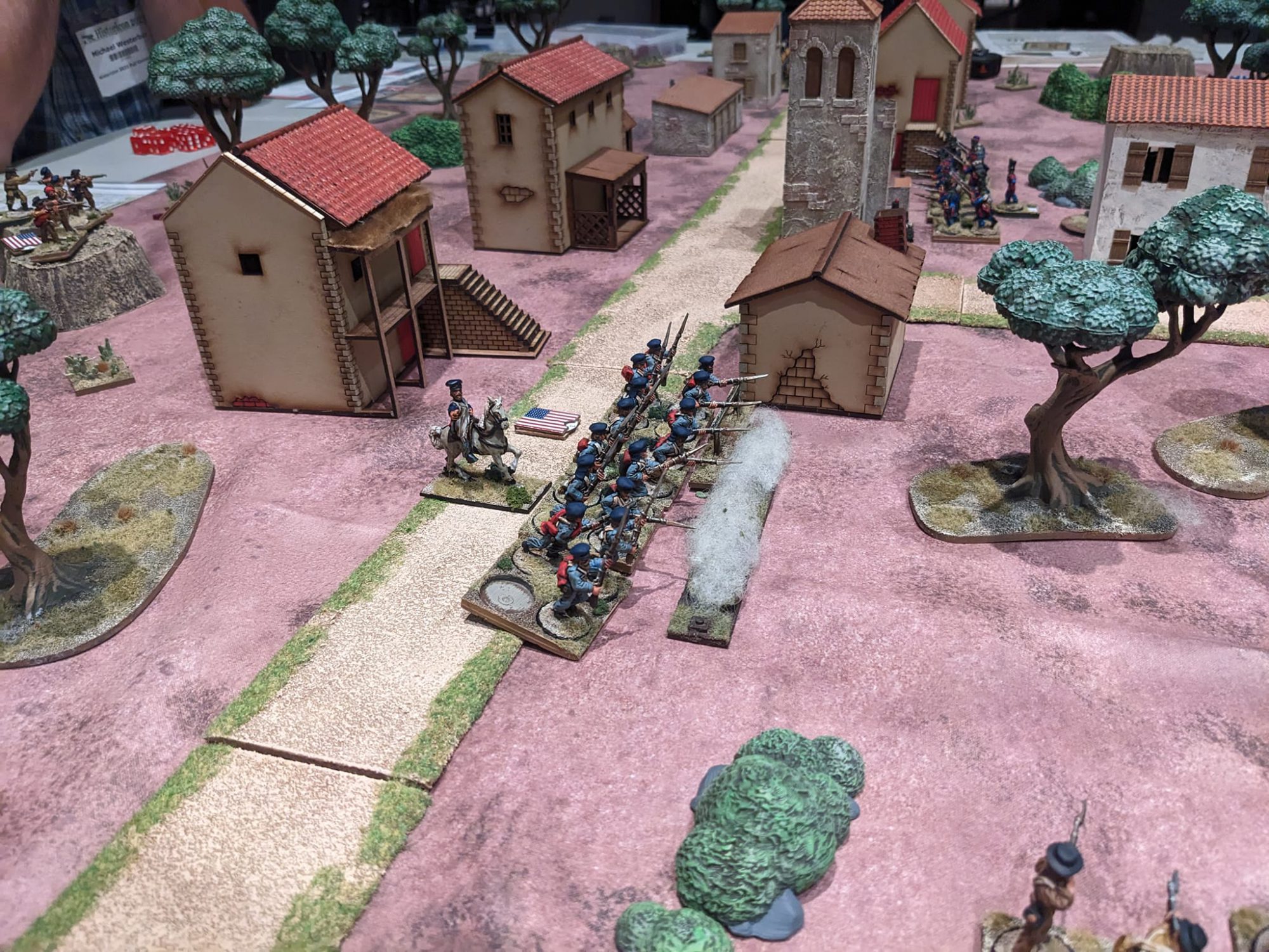 Light infantry pour skirmisher fire into the advancing regulars while the lancers attempt to move around. Credit: Michael O "Mugginns"