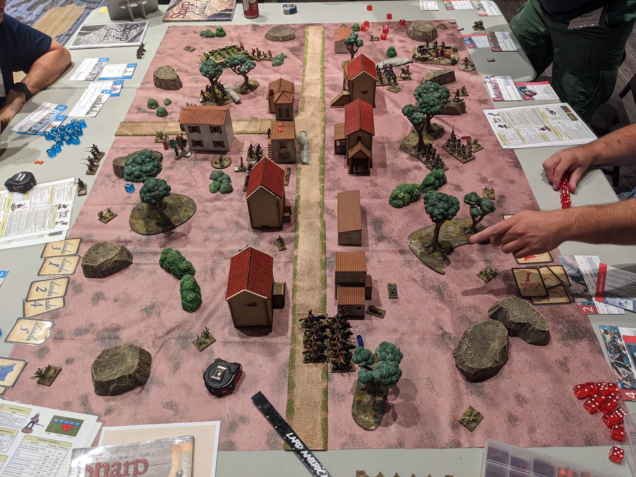 Pickett's Charge for a long time and have read through it multiple times but haven't really figured it out. I also don't have any small scale stuff painted so I just focused on Sharp Practice. Richard J ran a great game and really helped my brother and me figure it out. I felt like after we played it I knew pretty much everything about how to play.