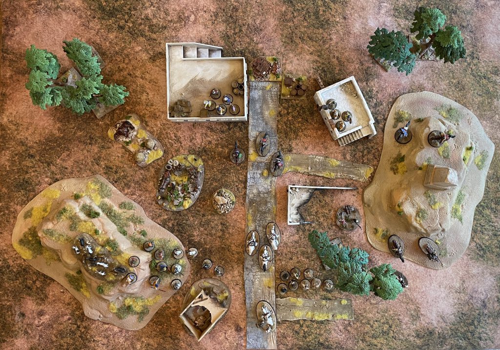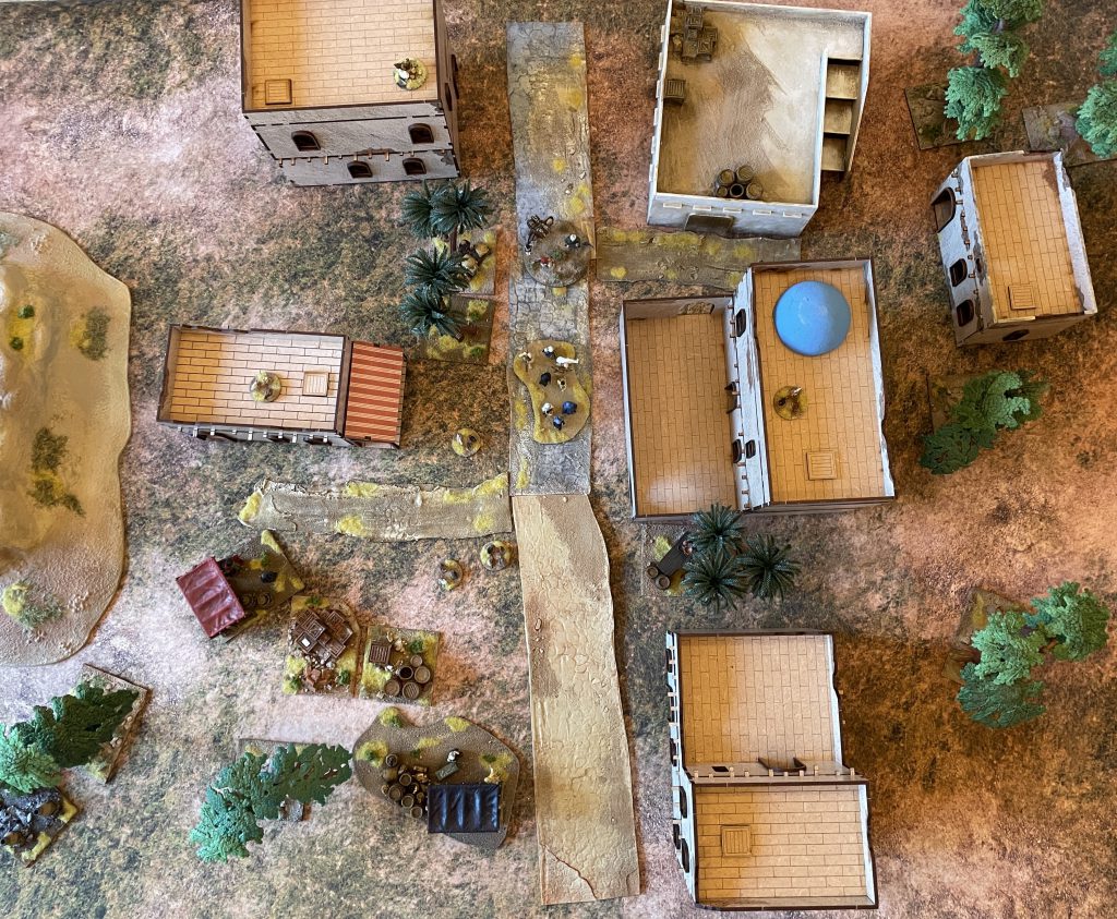I probably need a different mat for this one - the Western Desert is much more arid than my mixed scrub board can represent! The desert is in many ways the first line of defence for the other boards - hold the line here and you don't need to fight in the village, town or city!